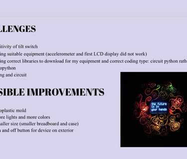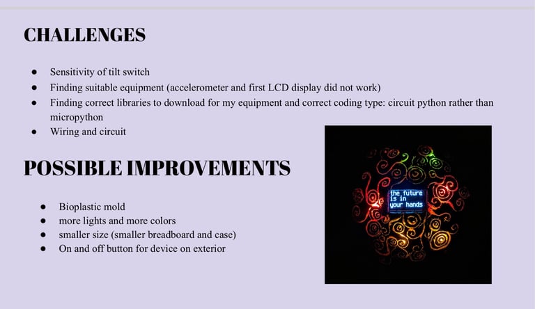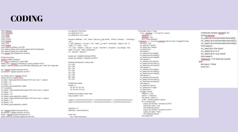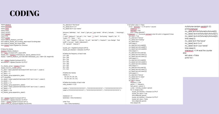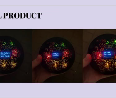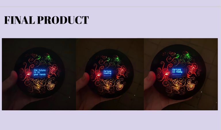 The Ball is programmed with a set of predefined answers unlocked by shaking the device. Led lights and sound are also integrated when delivering your fortune to create a further interactive experience for the user.