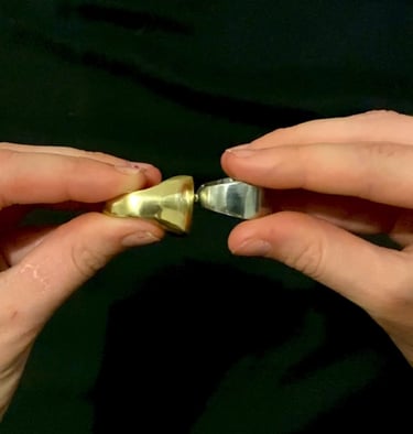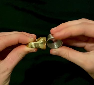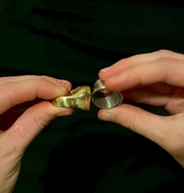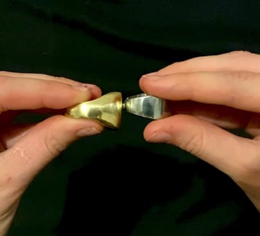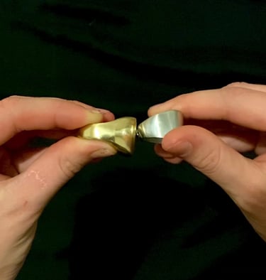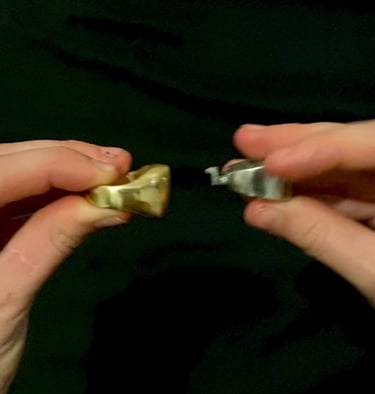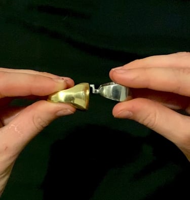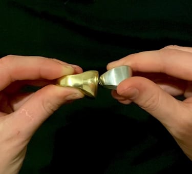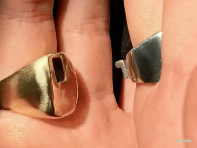 The ring duo were made to fit perfectly together, connecting two bodies into one. The rings require motion from both individuals to lock in and out.