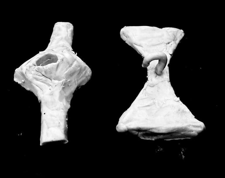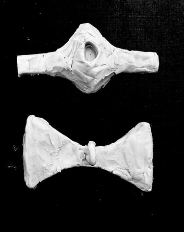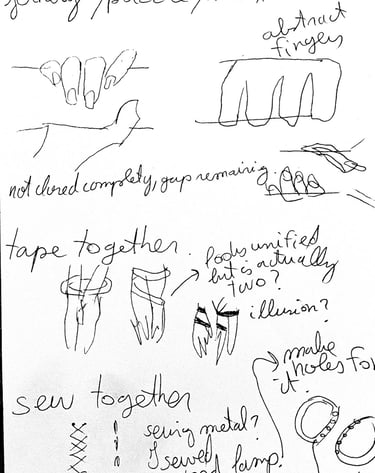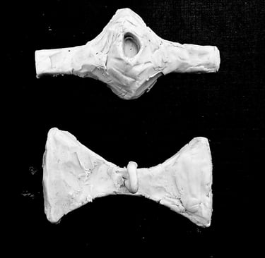 The piece took shape through several prototypes to find a working mechanism to create the lock and key aspect of the jewelry piece. I experimented with wire, clay, and paper.