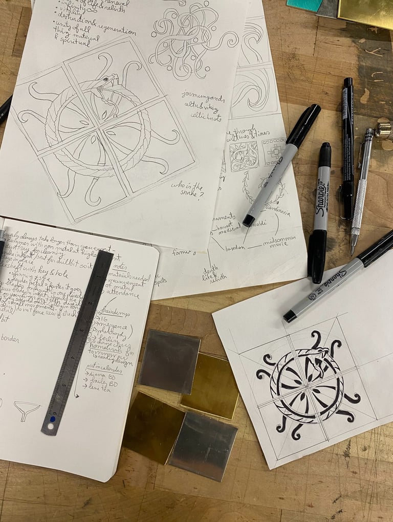 Using brass and nickel as opposing metals illustrating opposing forces within the ouroboros